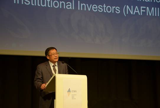 NAFMII Deputy Secretary-General Yang Nong delivers a keynote speech on the 45th ICMA Annual Meeting.