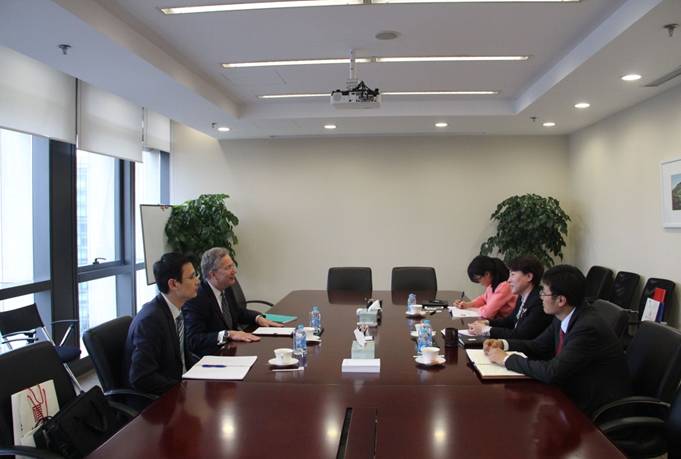 On the afternoon of April 12, Deputy-Secretary General Cao Zijuan met with Martin Scheck, the CEO of International Capital Market Association (ICMA) and his delegation.