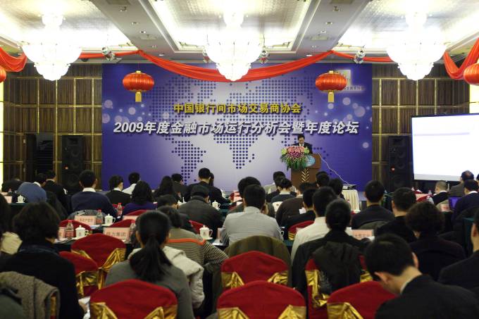 1月27日,交易商协会“2009年度金融市场运行分析会暨年度论坛”在北京民族饭店举行。全国人大财经委、国家发改委、人民银行和银监会等有关部门的领导及近60家会员单位与会。会议分为两个部分:上午的“年度分析会”邀请人民银行调查统计司张涛司长、国家统计局国民经济核算司董礼华副司长、发改委对外经济研究所张燕生所长就“中国经济、金融发展的若干趋势”、“2009年我国经济增长的特点”和“中国对外经济形势”等专题进行演讲;下午为“年度论坛”,各会员单位围绕“流动性与资产价格”、“通胀预期及管理”、“宏观调控与债券市场发展”以及“信用风险与金融衍生品创新”等热点问题进行了充分的讨论和交流。