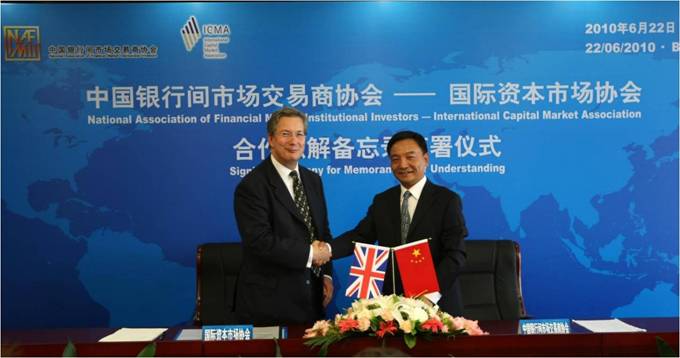 6月22日,时文朝秘书长与来访的国际资本市场协会(ICMA)首席执行官Martin Scheck签署双边合作谅解备忘录,英国驻华使馆金融事务主管官员Peter Mumford出席签字仪式。时秘书长、Martin Scheck和Peter Mumford分别在签字仪式上致辞。